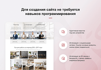 · Встроен конструктор нешаблонных лендингов. Любая страница сайта может стать лендингом с индивидуальным дизайном и набором блоков. В конструкторе больше 30-ти видов блоков и более 350-ти настроек для них.